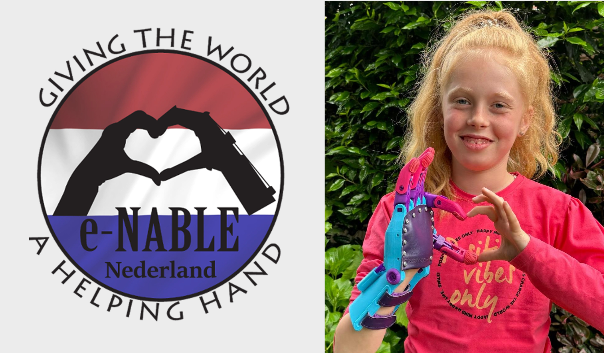 De e-NABLE-community is een verbazingwekkende groep vrijwilligers van over de hele wereld die met behulp van 3D-printers voor de ontvanger kostenloos 3D-geprinte handen en armen maken voor mensen die een reductiedefect hebben aan hand of arm. Over de gehele wereld zijn er inmiddels e-NABLE chapters ontstaan, die er lokaal voor zorgen dat vrijwilligers en ontvangers van een 3D- hand of arm aan elkaar gekoppeld worden. Wij van e-NABLE Nederland koppelen vrijwilligers en ontvangers van een 3D hand of arm aan elkaar binnen Nederland (soms ook België en andere landen), wij doen als het ware de “match making”. We bekostigen alle onderdelen van deze 3D hand of arm door middel van donaties. Daar kunt u bij helpen om via Doelshop.nl uw aankopen te doen en zonder dat het u meer geld kost gaat er een deel van uw aankoopbedrag naar onze stichting en kunnen we dus meer mensen helpen. Wil je meer weten over ons kijk dan op onze website: www.enablenederland.nl Alvast bedankt voor uw steun!